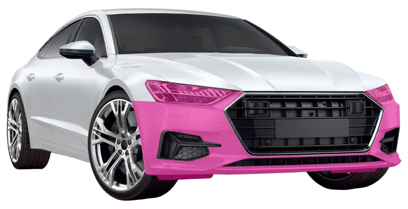 Covers the entire hood, the full fenders, the front bumper, door cups and headlights.
